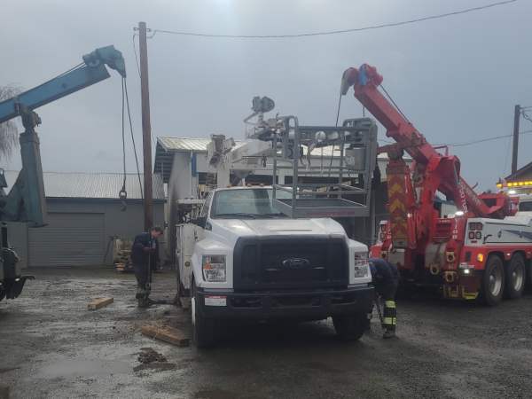 Portland crane service, Baker & Baker Towing Service, recently helped a customer in Keizer, OR. The customer called in requesting a professional Portland crane service after their Ford F750 bucket truck would not start.